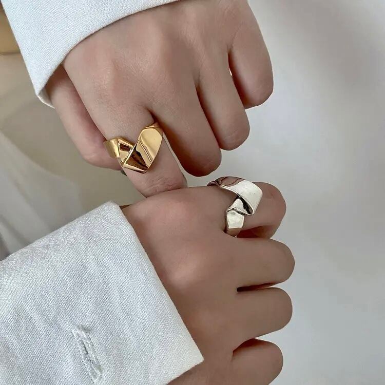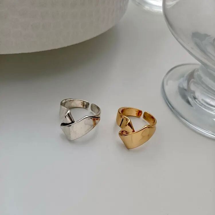 エッジが効いたデザインで手元のおしゃれにピッタリのデザインリング