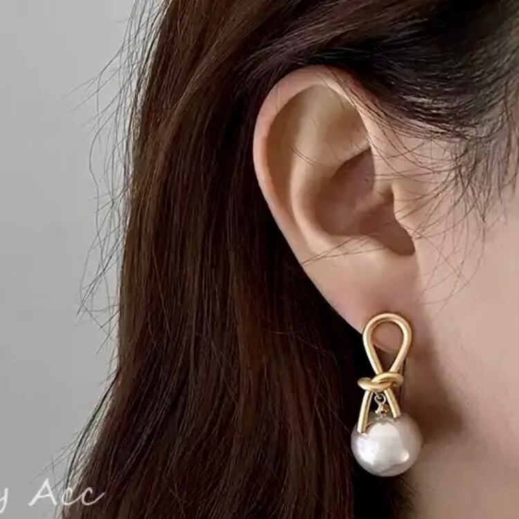 大人かわいい♡シンプルなパールと結びデザインのピアス