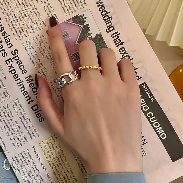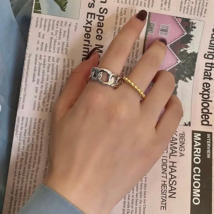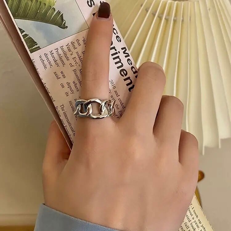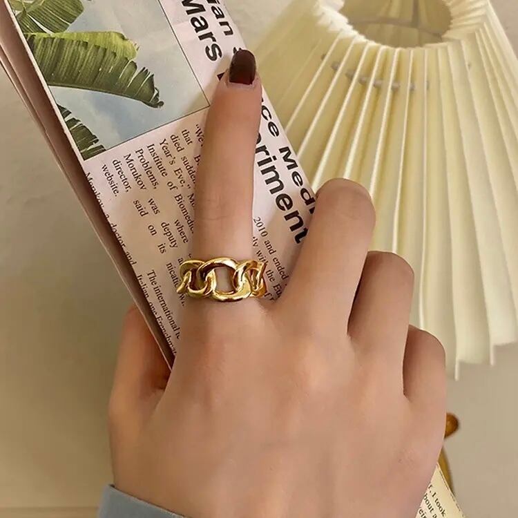 今人気のデザインリング。大きめなチェーンモチーフに。