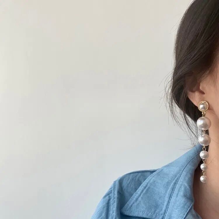ちょっぴり大き目のパールでシンプルなコーデにも華やかさを与えてくれます。