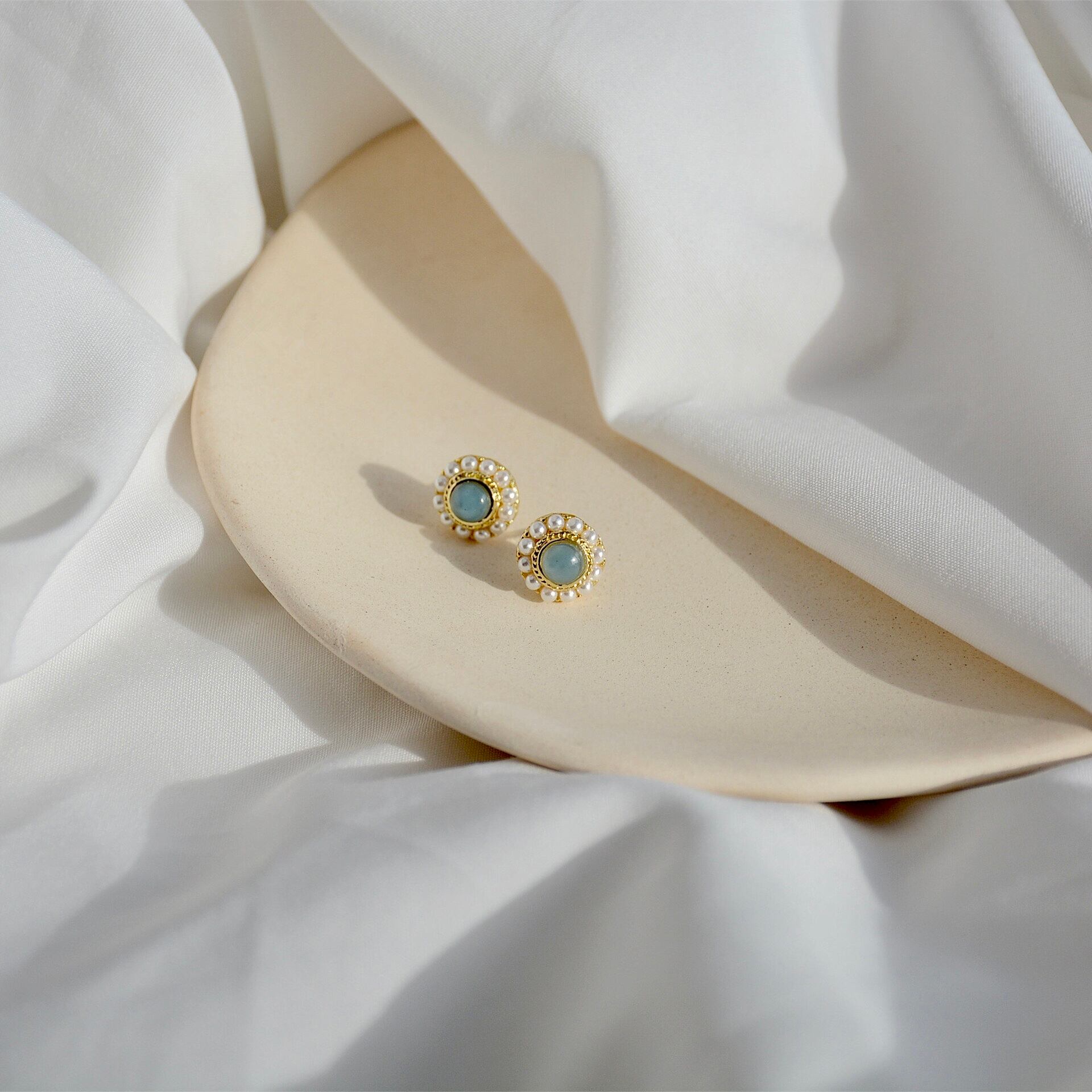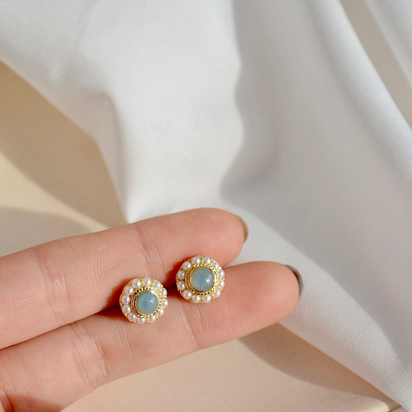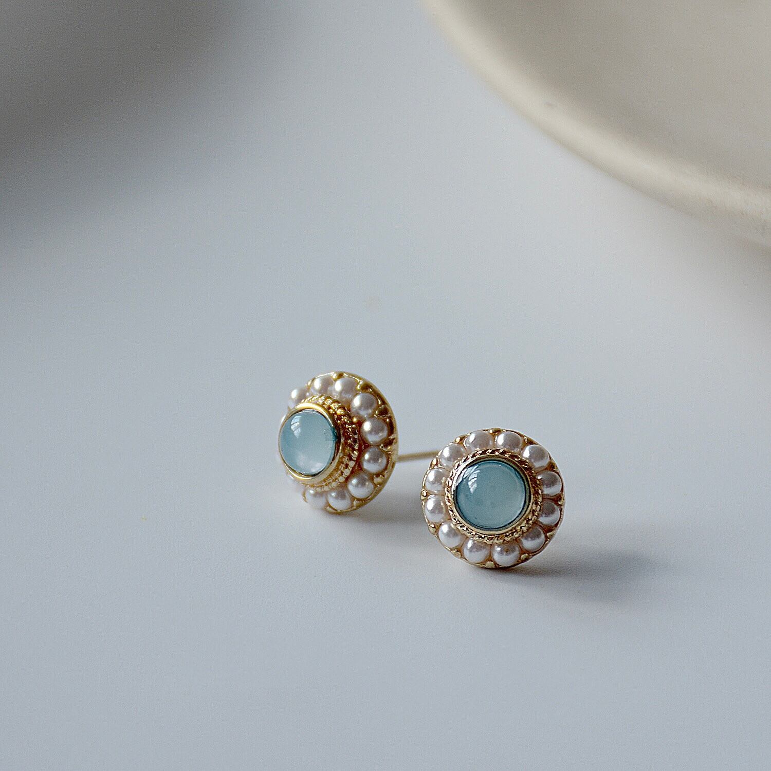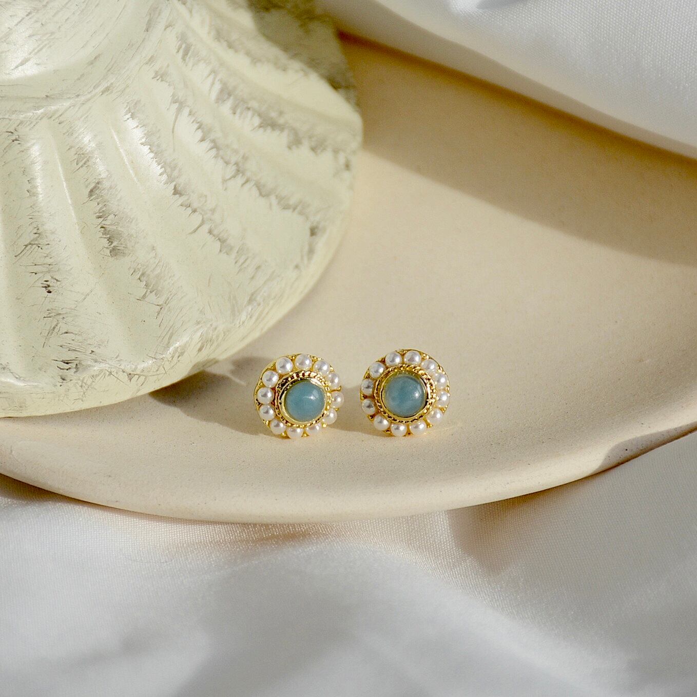 ゴールド×パール×ライトブルーの組み合わせがフェミニンでおしゃれ