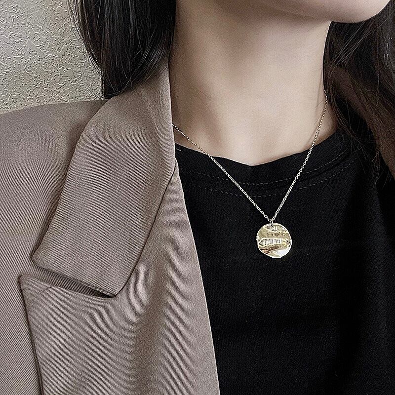 Bumpy round plate necklace C037