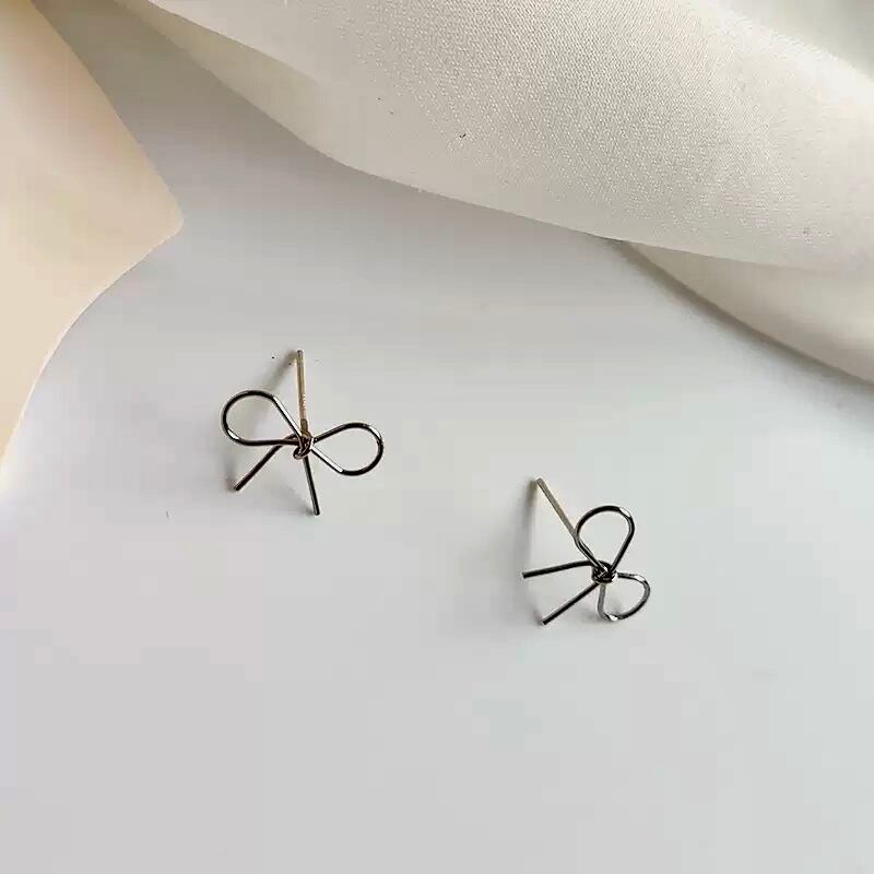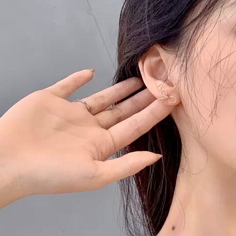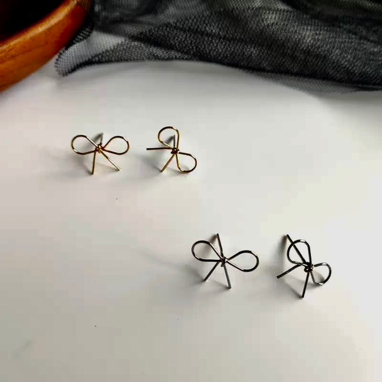 ちょうちょ結びのようにパーツを湾曲させたデザインピアス。