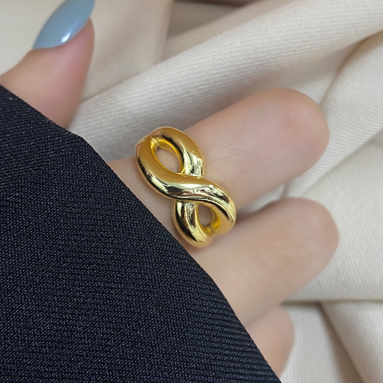 捻じれたデザインが立体感が生み出し程よいボリュームが、華奢な指先を引き立ててくれるリング