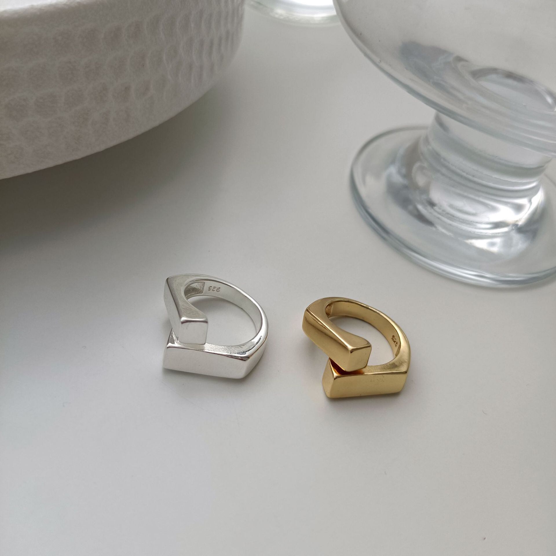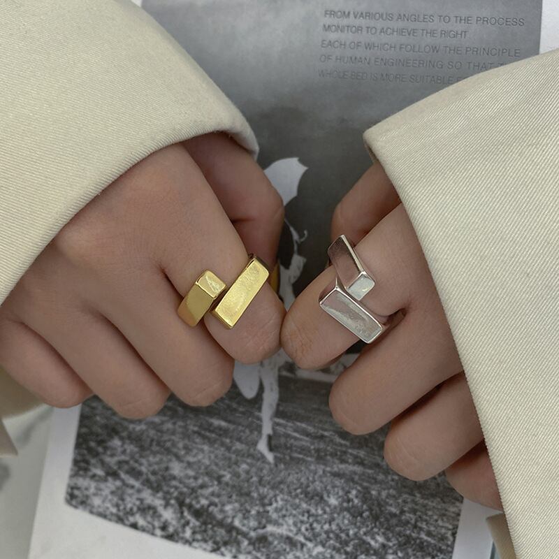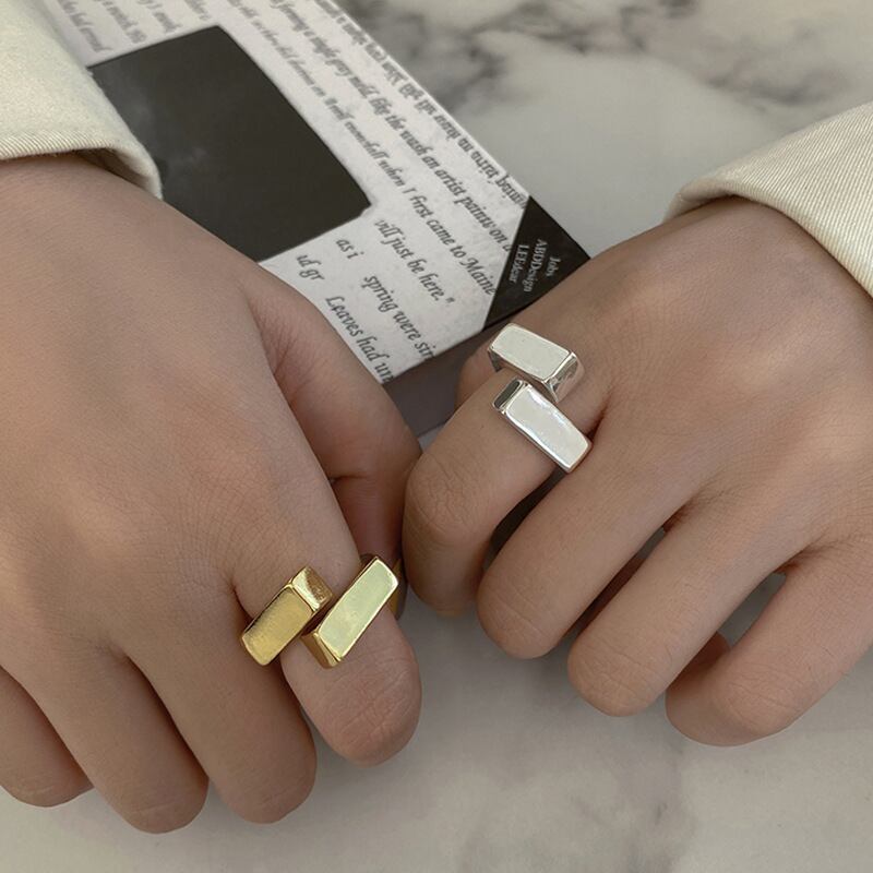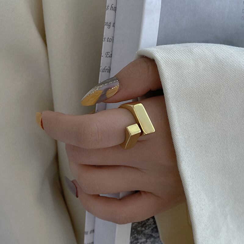 角張ったデザインが特徴的なリング。