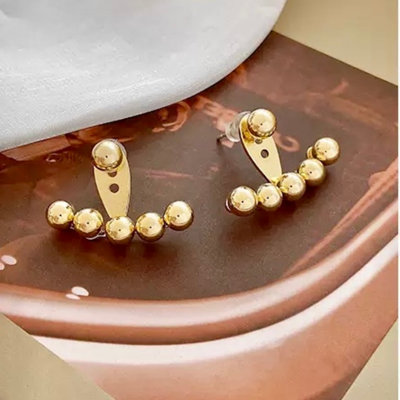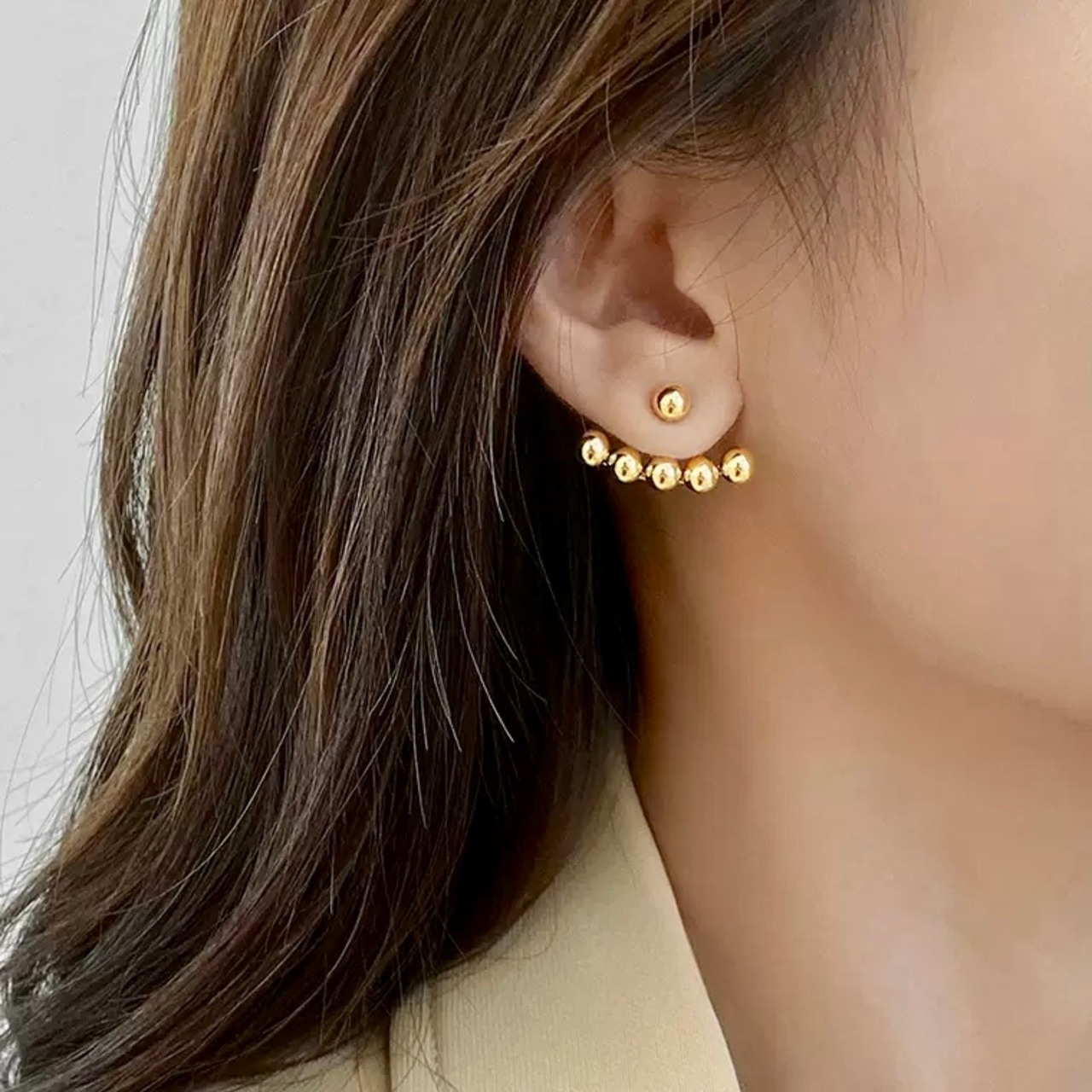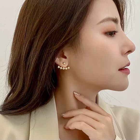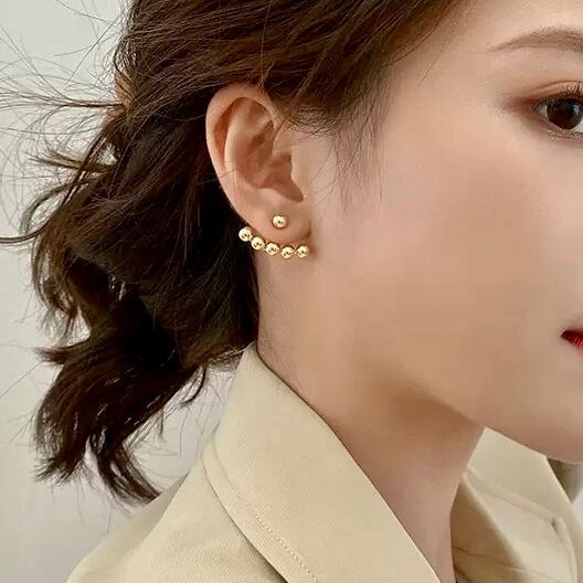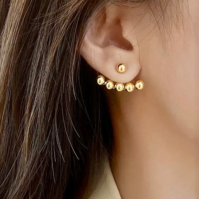 小粒のドットが、フェミニンでさりげなく華やかさも印象づけるピアス。