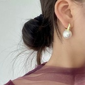 大きなパールモチーフとゴールドカラーで華やかな印象を与えてくれるピアス