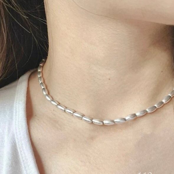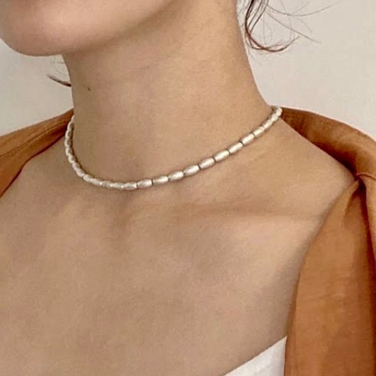 ヴィンテージのような独特なデザインのメタルビーズネックレス
