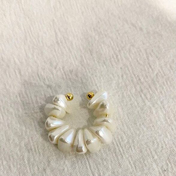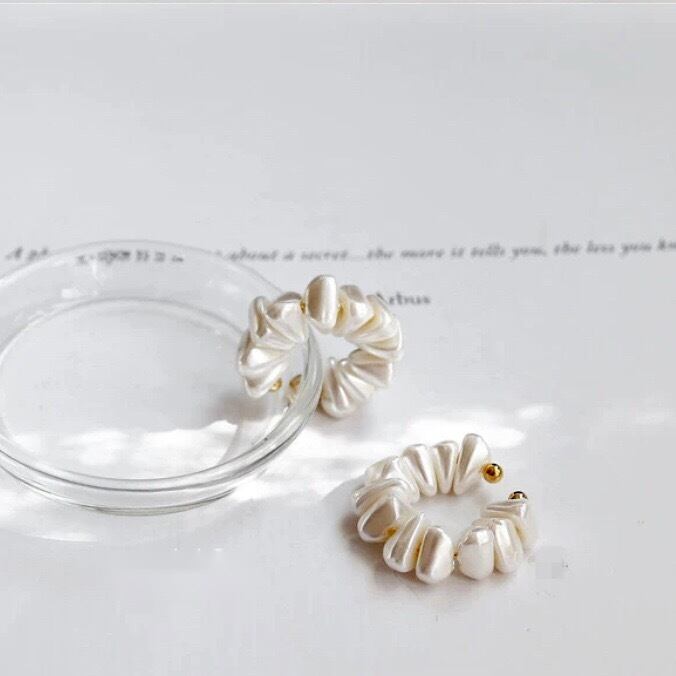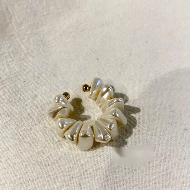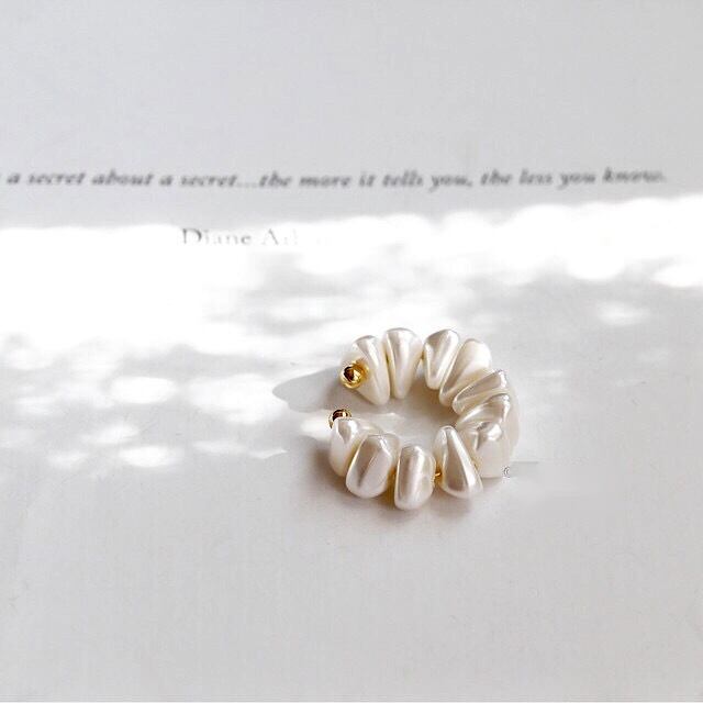 ふぞろいのパールがポイントのイヤカフ。上品な光沢感がフェミニンさを演出します。