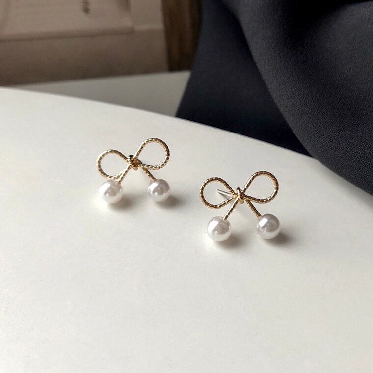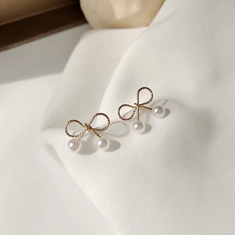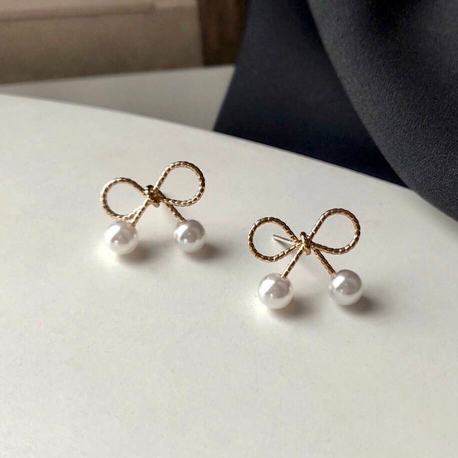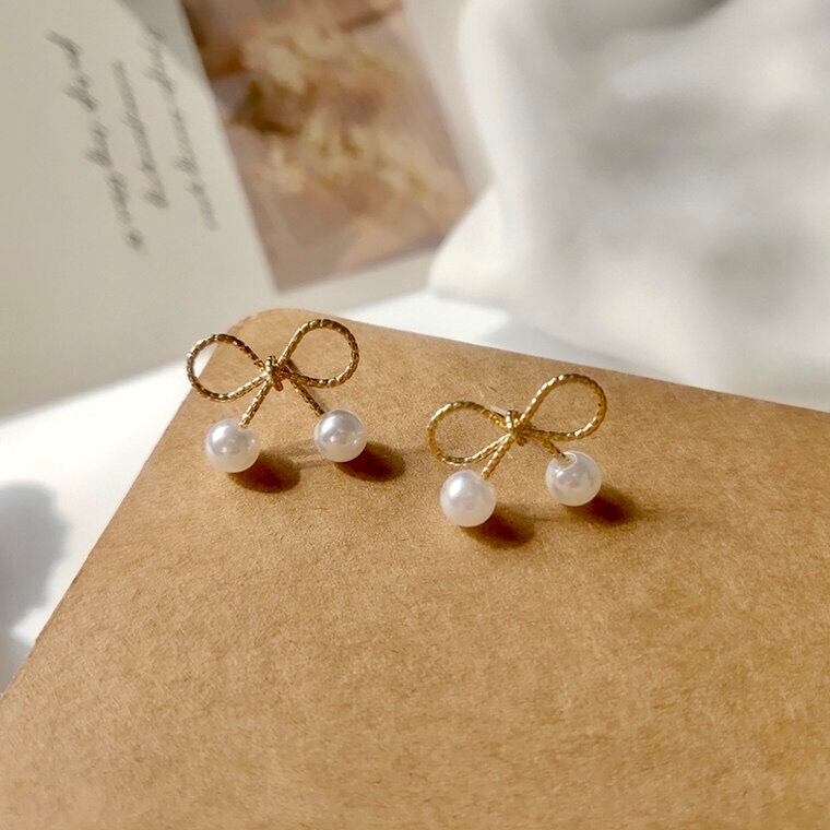 Ribbon x pearl pierce