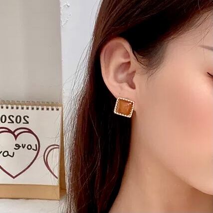 クリアな素材感がナチュラル感を上げてくれるスクエアピアス。