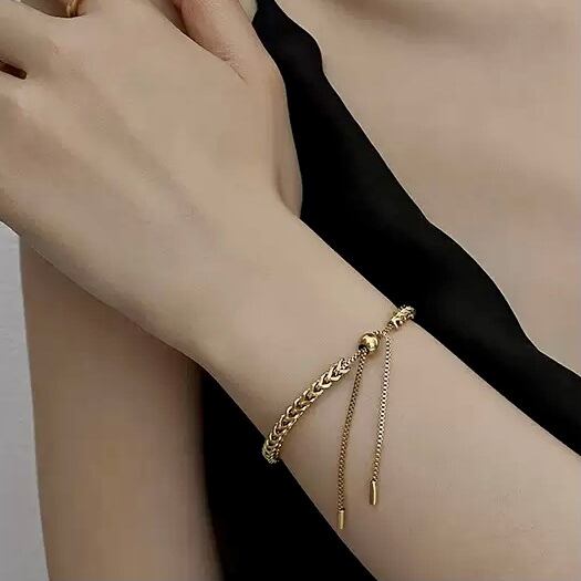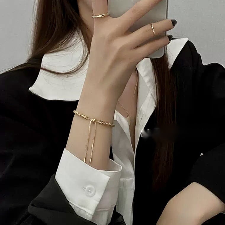 ビーズ部分を引っ張っていただくだけで、調節が可能なので片手でも楽々着用していただくことができるます