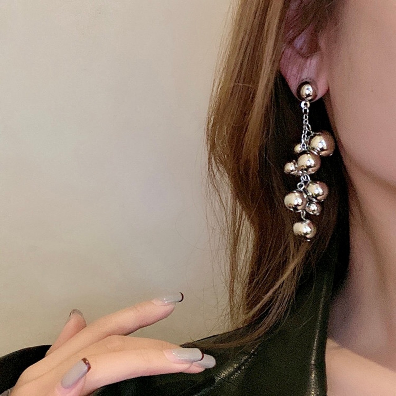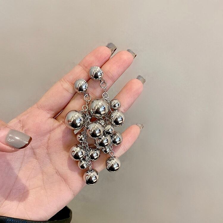 耳元で華やかに揺れるボールモチーフをふんだんにあしらったピアス