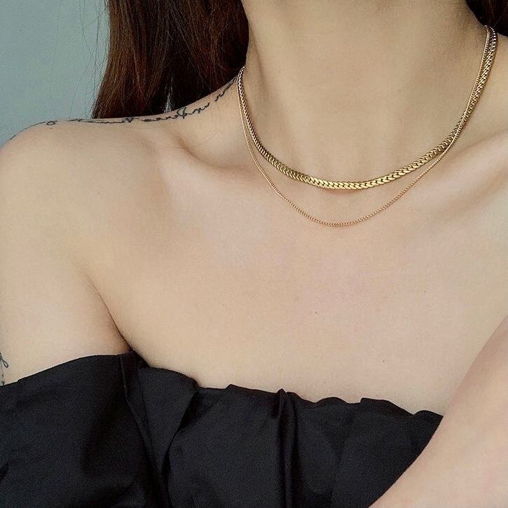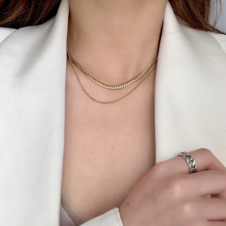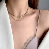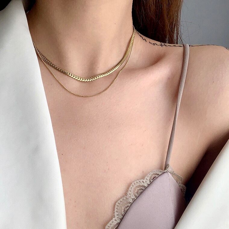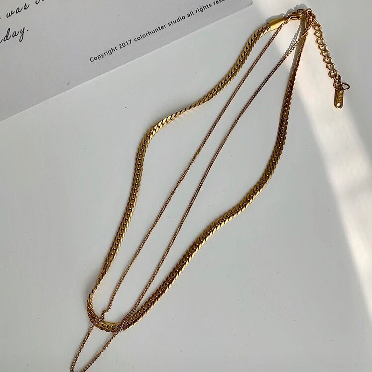 異なる2種類のチェーンを組み合わせたチェーンネックレス。