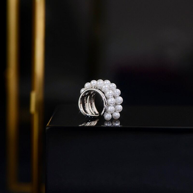 パールとメタルがクロスしたデザインのイヤーカフ♪