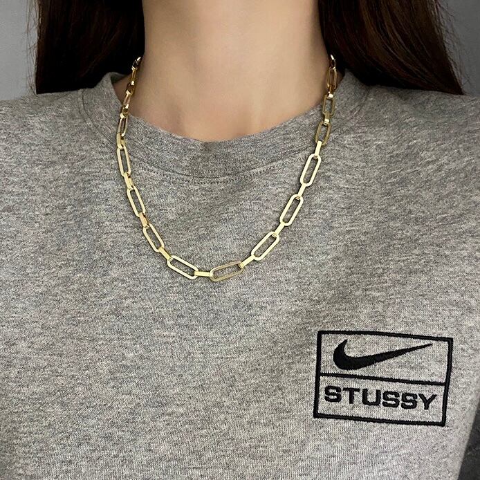 適度な重量感、控えめな光沢感のチェーンを使用し、上品でトレンド感のあるネックレスです。