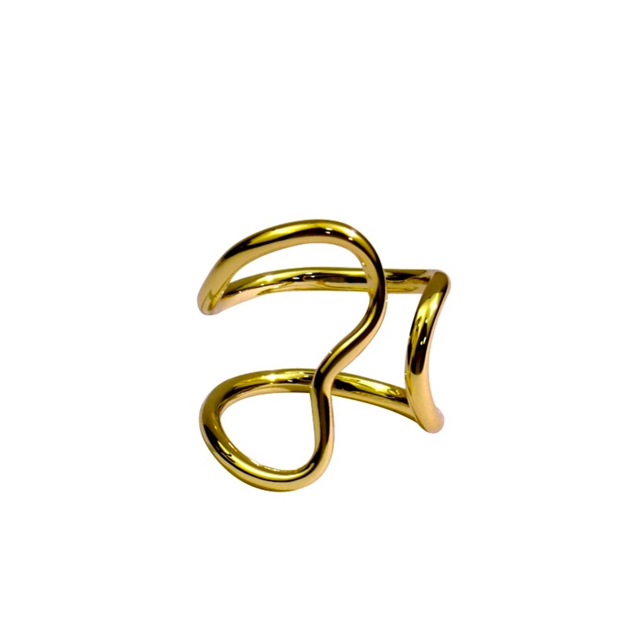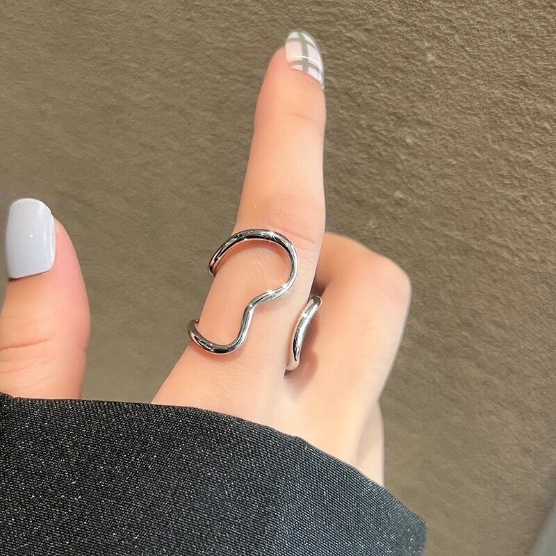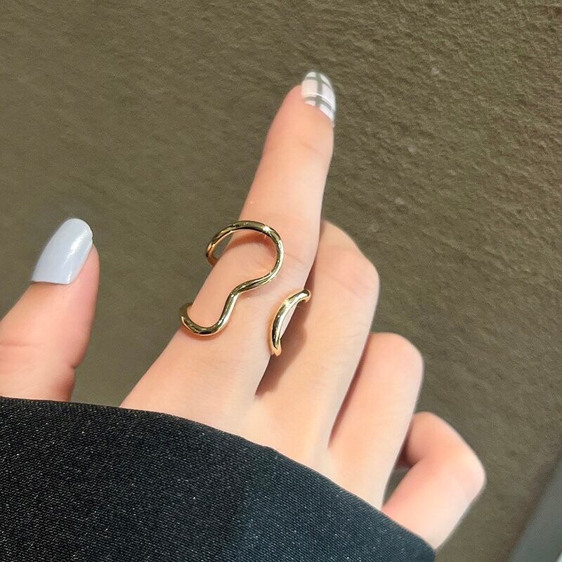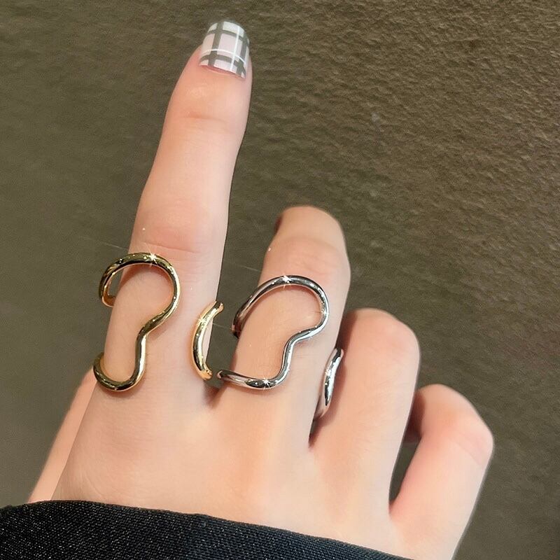 波打つような滑らかなメタルラインが、すっと肌に溶け込むようなウェーブリング
