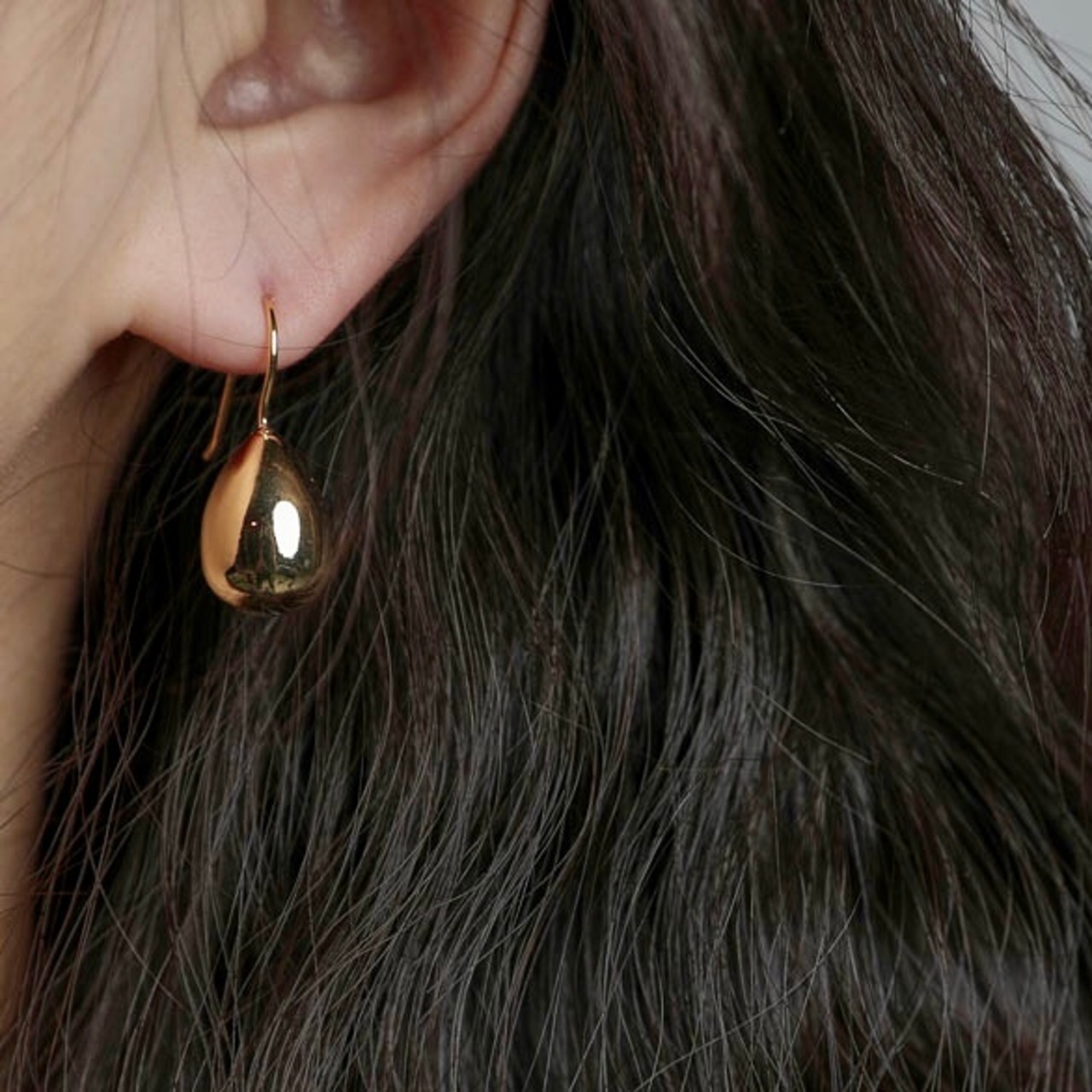 ゆるやかなカーブは丸みがあり、女性らしい上品な印象を演出してくれるしずくピアス