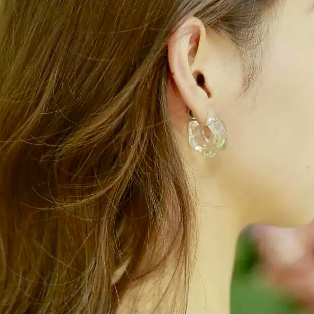 透明感たっぷりのモチーフが、耳元を華やかな印象に導くピアス。