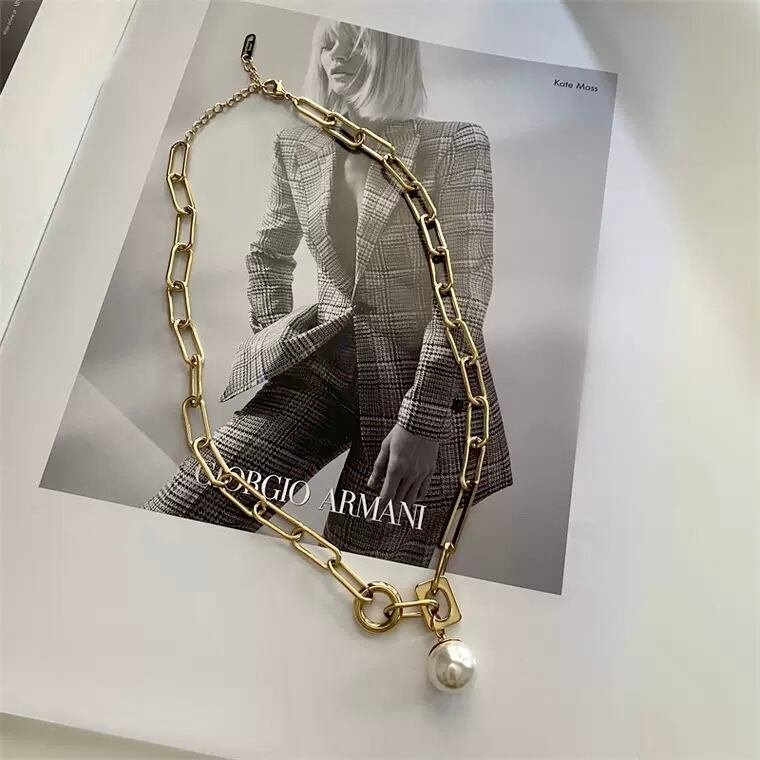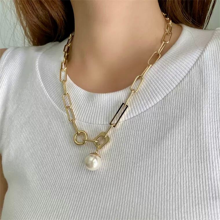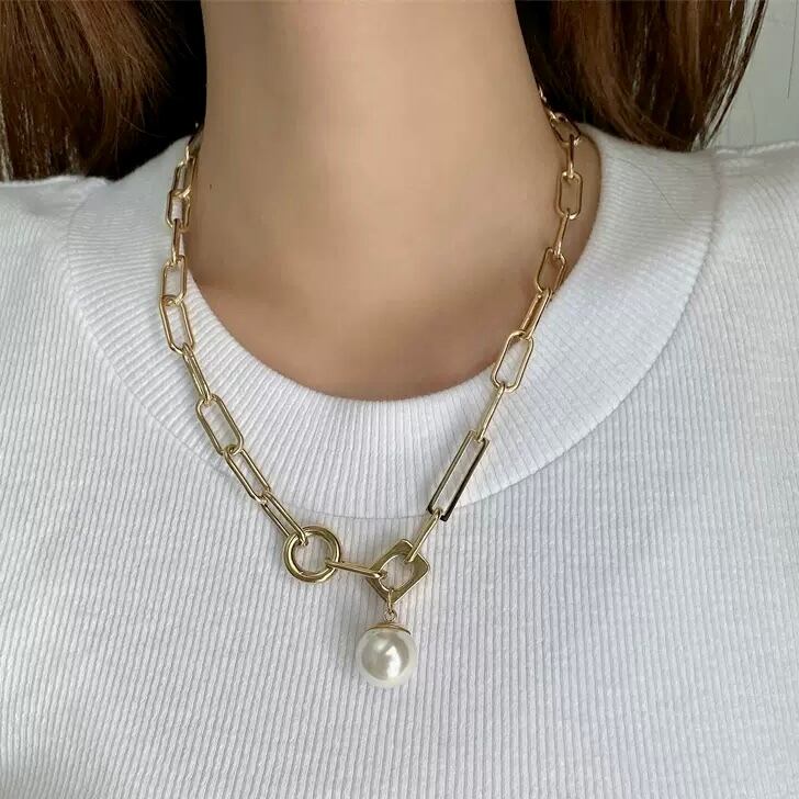 1粒の大ぶりのパールが輝くチェーンネックレス
