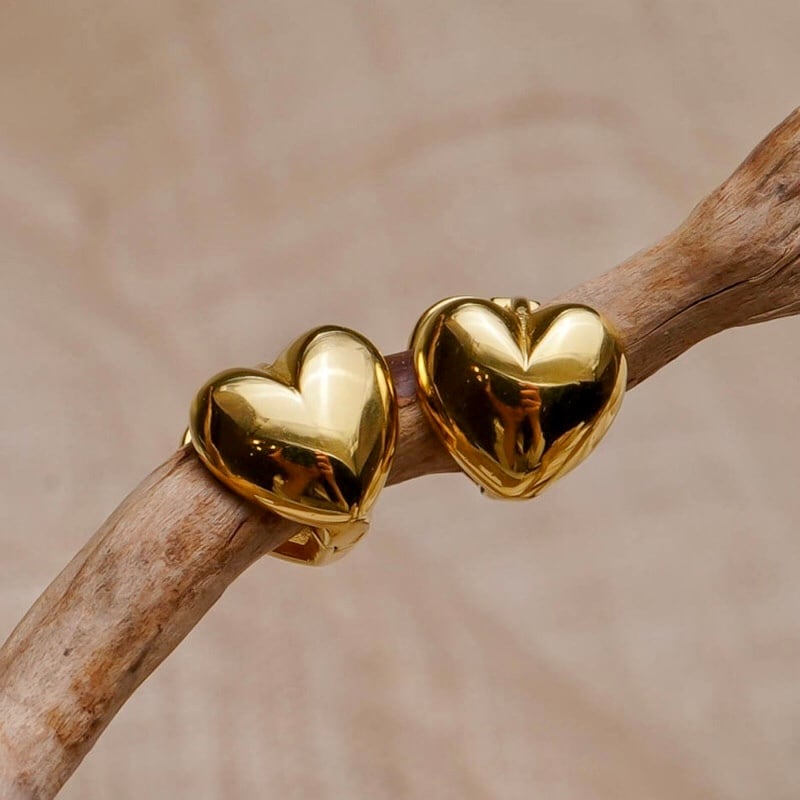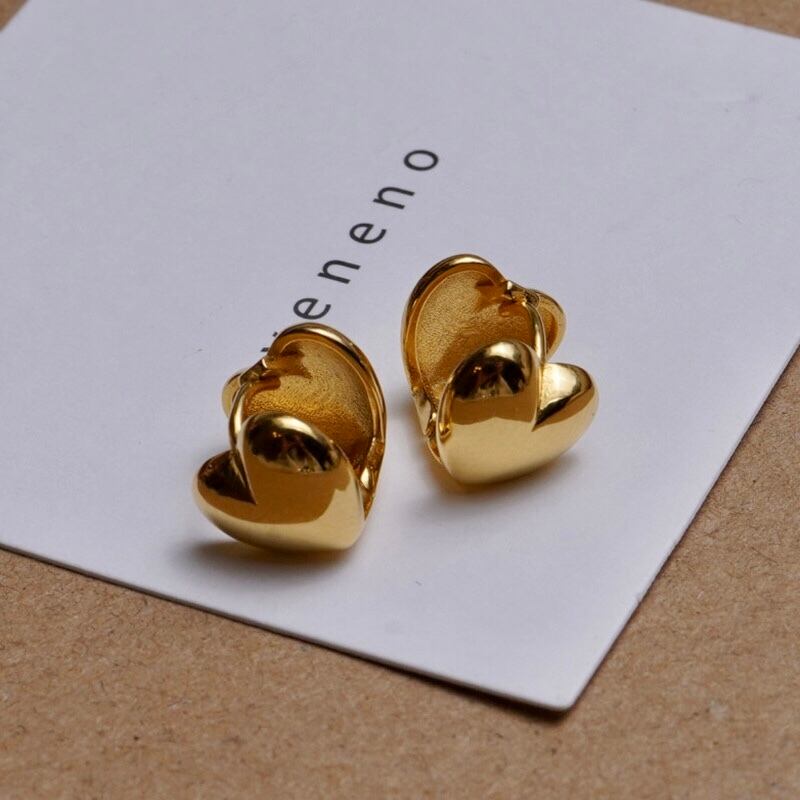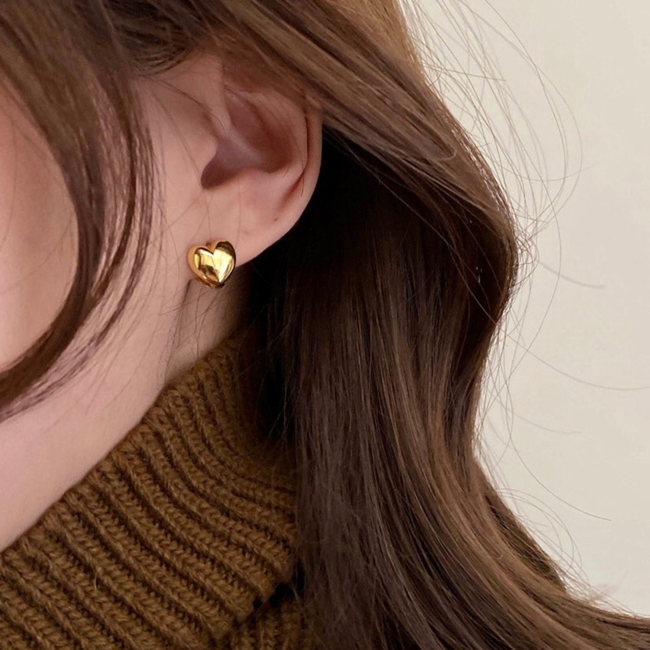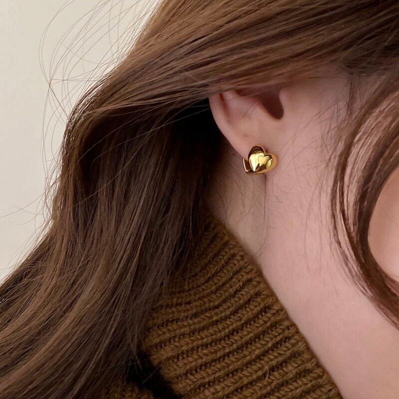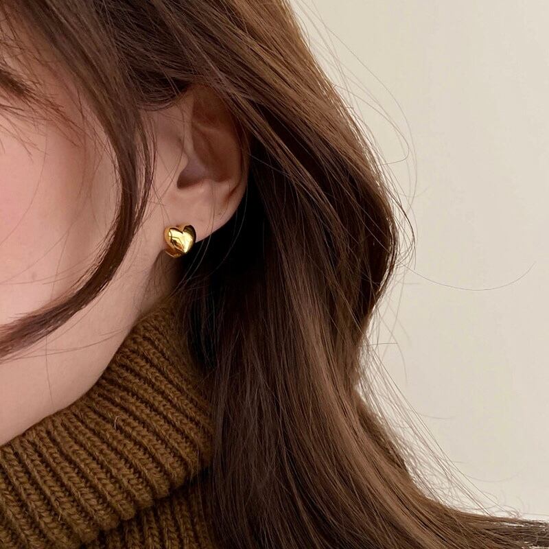 華やかで可愛らしい装いにぴったりの、コロンとしたハート型のピアス