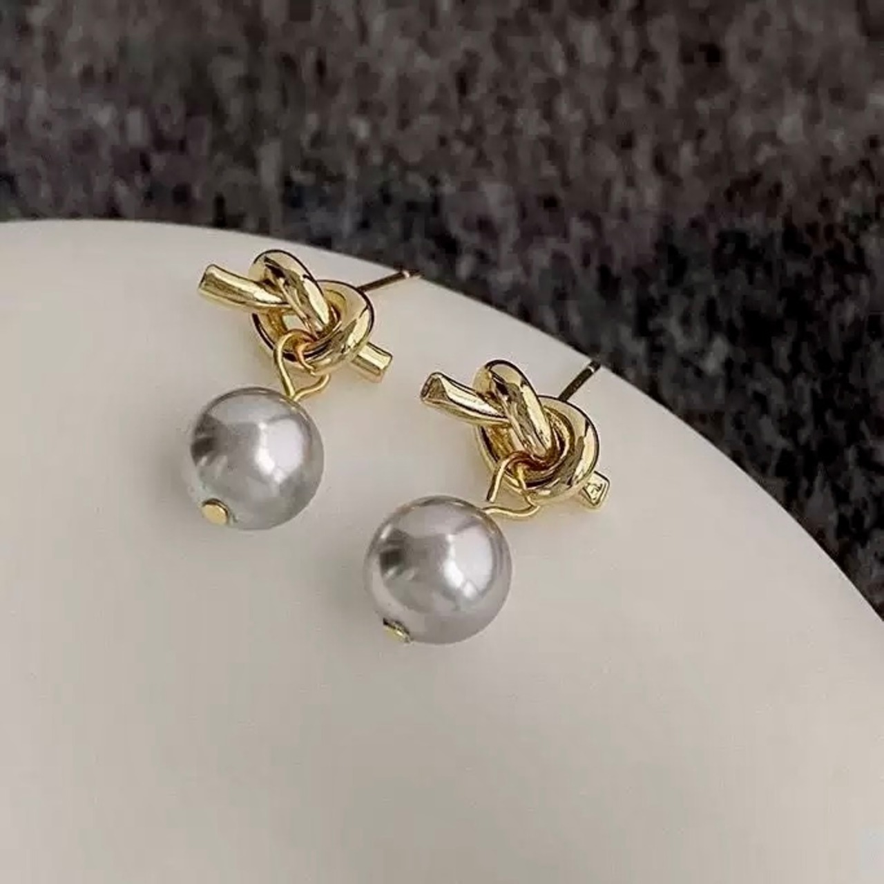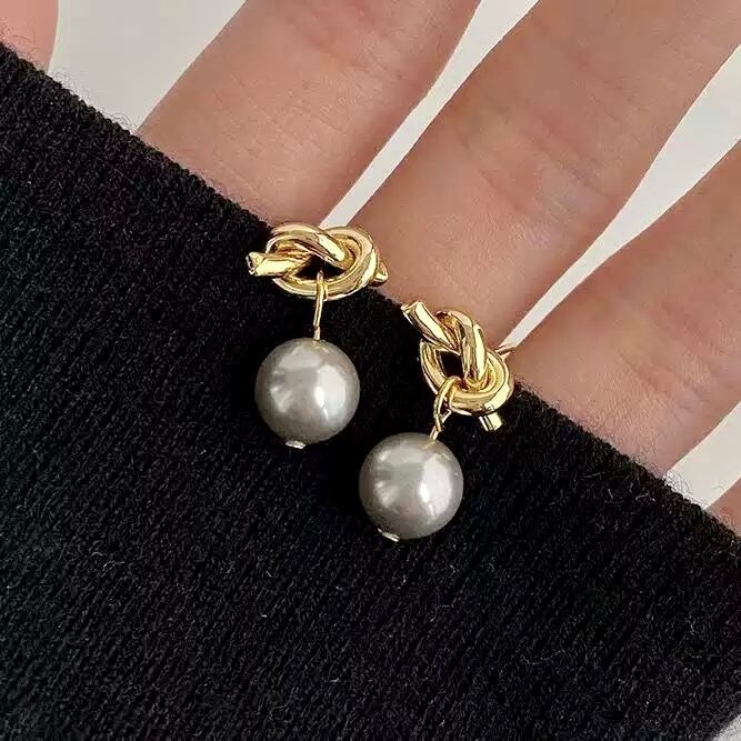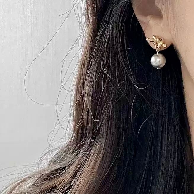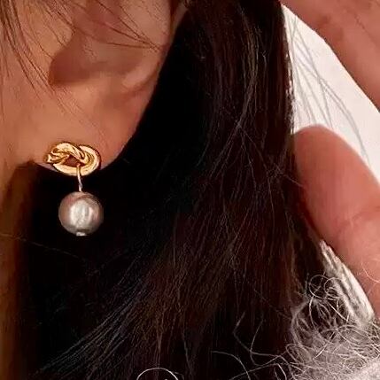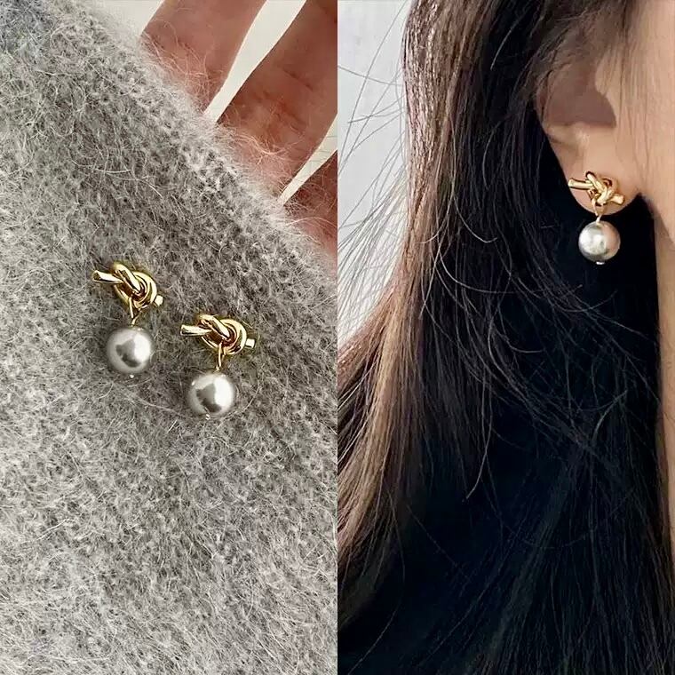 ゴールドの結び目が存在感を放ち、上品なグレーパールが輝きますゴどんなスタイルにも合わせやすく、特別な日やパーティーなどにもぴったりのアクセサリーです。