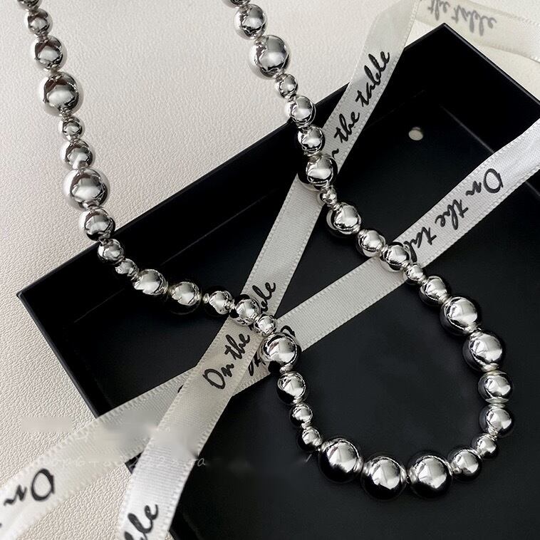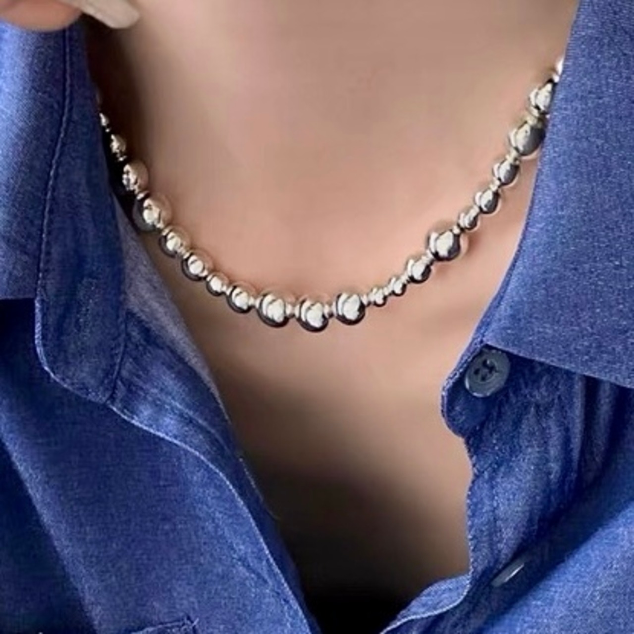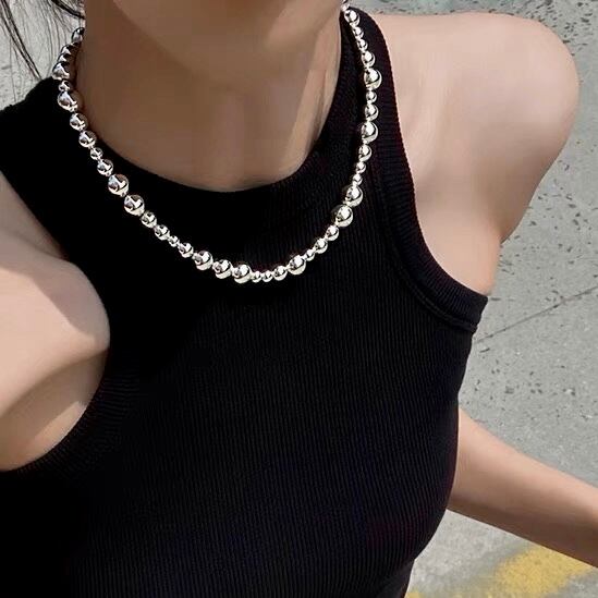 存在感のあるシルバーボールチェーンネックレス。